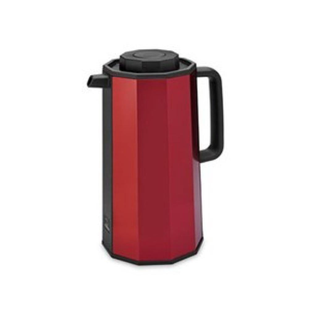 - ترمس احمر كبير يتميز بوجود بطانة زجاجية مفرغة بين البطانة الداخلية والخارجية، مما يساعد على الحفاظ على درجة حرارة المشروبات بشكل ممتاز لفترة طويلة.