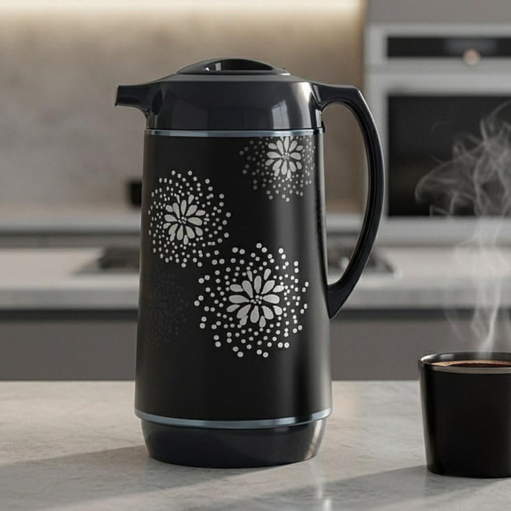 - اللون الأسود اللامع يمنح الترمس مظهراً عصريًا وفخمًا، يناسب الذوق الراقي، مما يجعله خيارًا مميزًا بين ترامس قهوه الفاخرة.