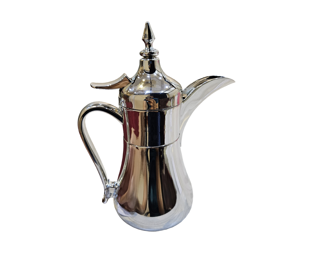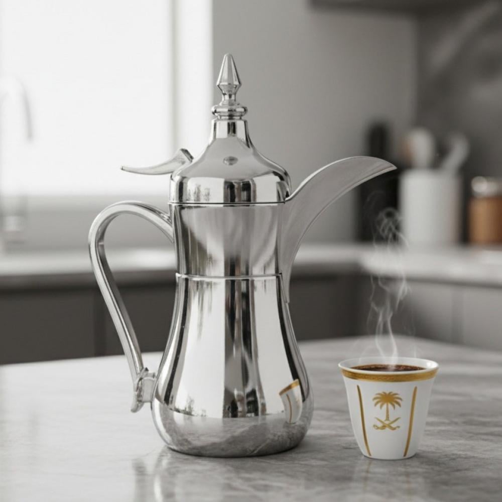 - دلة قهوه عربيه تم صنعها من مواد عالية الجودة, مما يضمن المتانة والكفاءة العالية, كما ان الطلاء الفضي يضيف لمسة من الفخامة والأناقة.