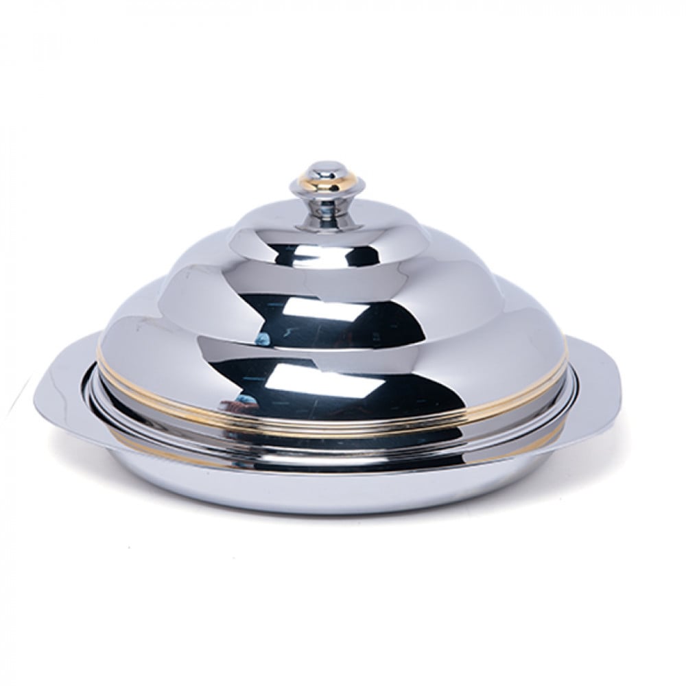سكوالو - صحن تقديم من الستانلس ستيل بيضوي مع غطاء لامع وأنيق - فضي - 45x30x8 سم - G 45SM