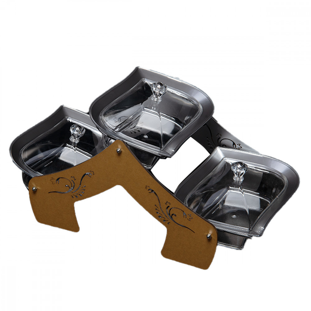 سكوالو - صحون حلويات ومكسرات شفافة من الإكريليك ( 3 قطع مع قاعدة ) - ( 52x31 سم ) - RT-9626G/S