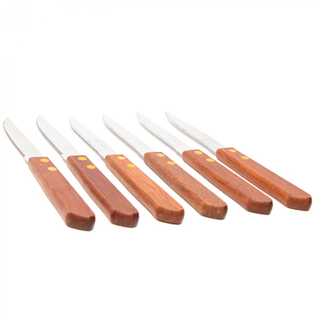 سكوالو طقم سكاكين مائدة عدد 6 بيد خشبية بتصميم أنيق - بني - 19.5x1.4 سم - ATD00447W