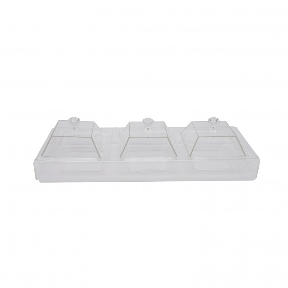 صحن حلا إكريليك ( 3 اقسام ) مع غطاء ( تايواني ) RT-9663-3