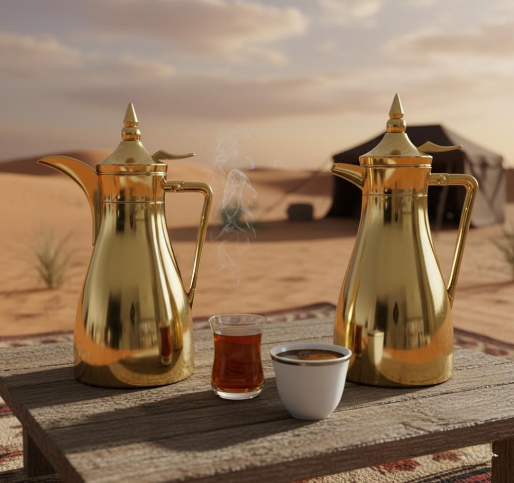 - التصميم: نقش أنيق فاخر مستوحى من الضيافة السعودية.