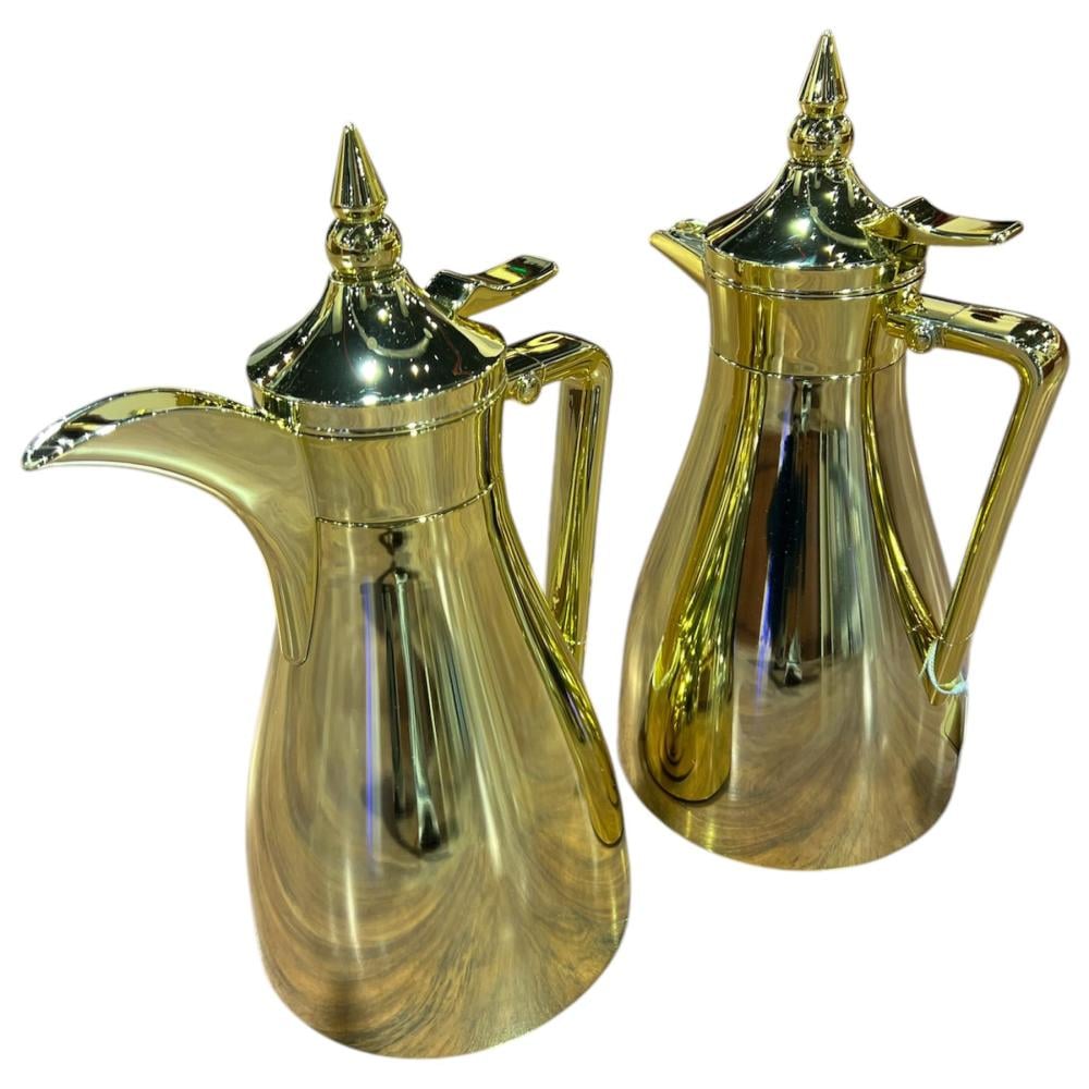 - ترامس ذهبي الأول بسعة 1 لتر للقهوة والثاني بسعة 0.80 لتر للشاي، مما يجعله مثالياً لتقديم المشروبات الساخنة لعدد جيد من الضيوف دون الحاجة لإعادة التعبئة المتكررة.