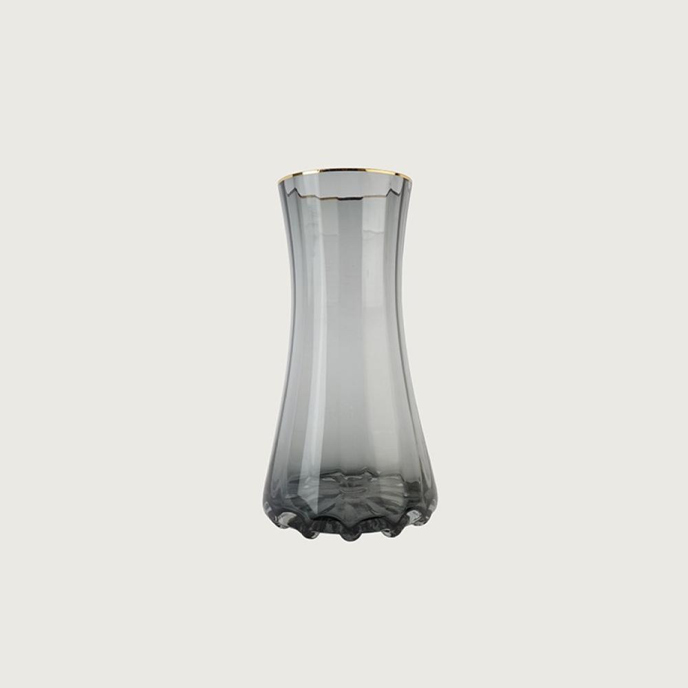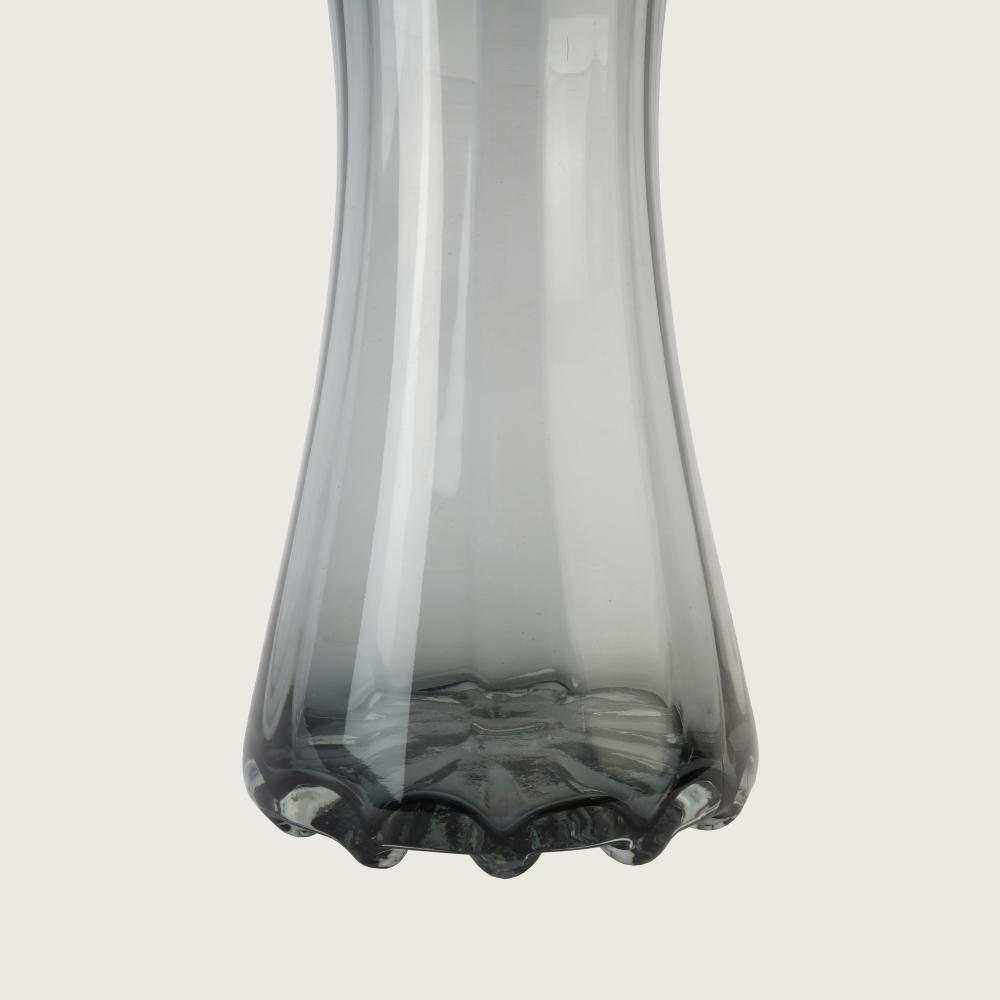 فازة إبداعية مصنوعة من الزجاج باللون الرمادي, يمكن تزيينها بوضع نبات إصطناعي أو أزهار حقيقية بداخلها وعرضها على طاولة الطعام أو في غرفة المعيشة. الطول 7, الارتفاع 28, العمق 26.5. cm