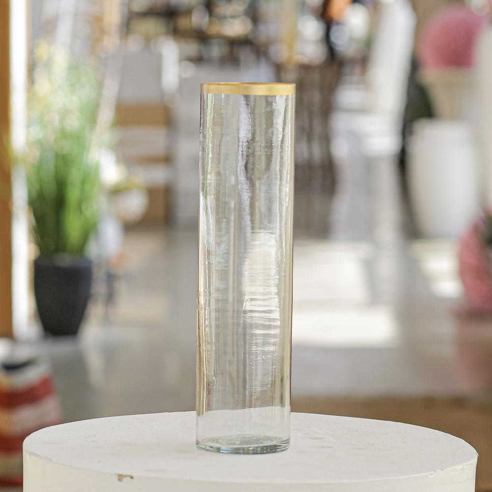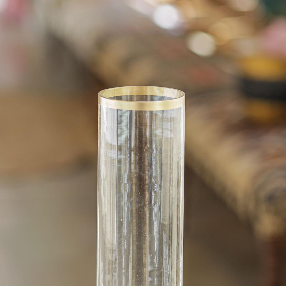 فازة زجاجية شفافة رفيعة مميزة تضفي مظهر جذاب تعكس الضوء ببريق ساحر مما يجعلها مثالية لعرض الزهور بداخلها . عرض 8 . ارتفاع 31