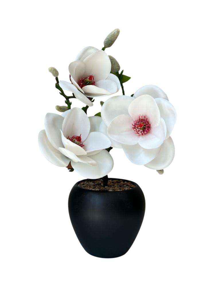 ماغنوليا ابيض بمركن الارتفاع 35cm عرض المركن 10cm